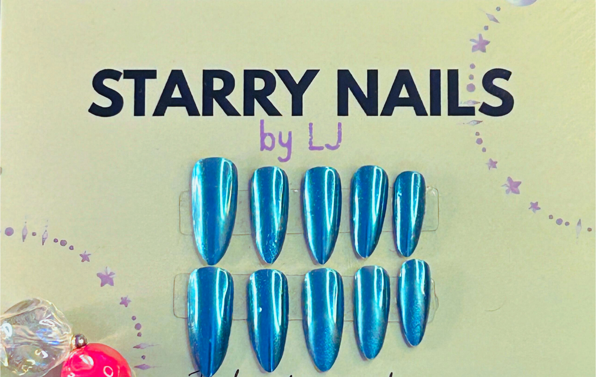 Slip on some shine with these dazzling Sapphire press ons! These chrome blue beauties bring a fun, futuristic vibe to your nails - glam has never been this easy.